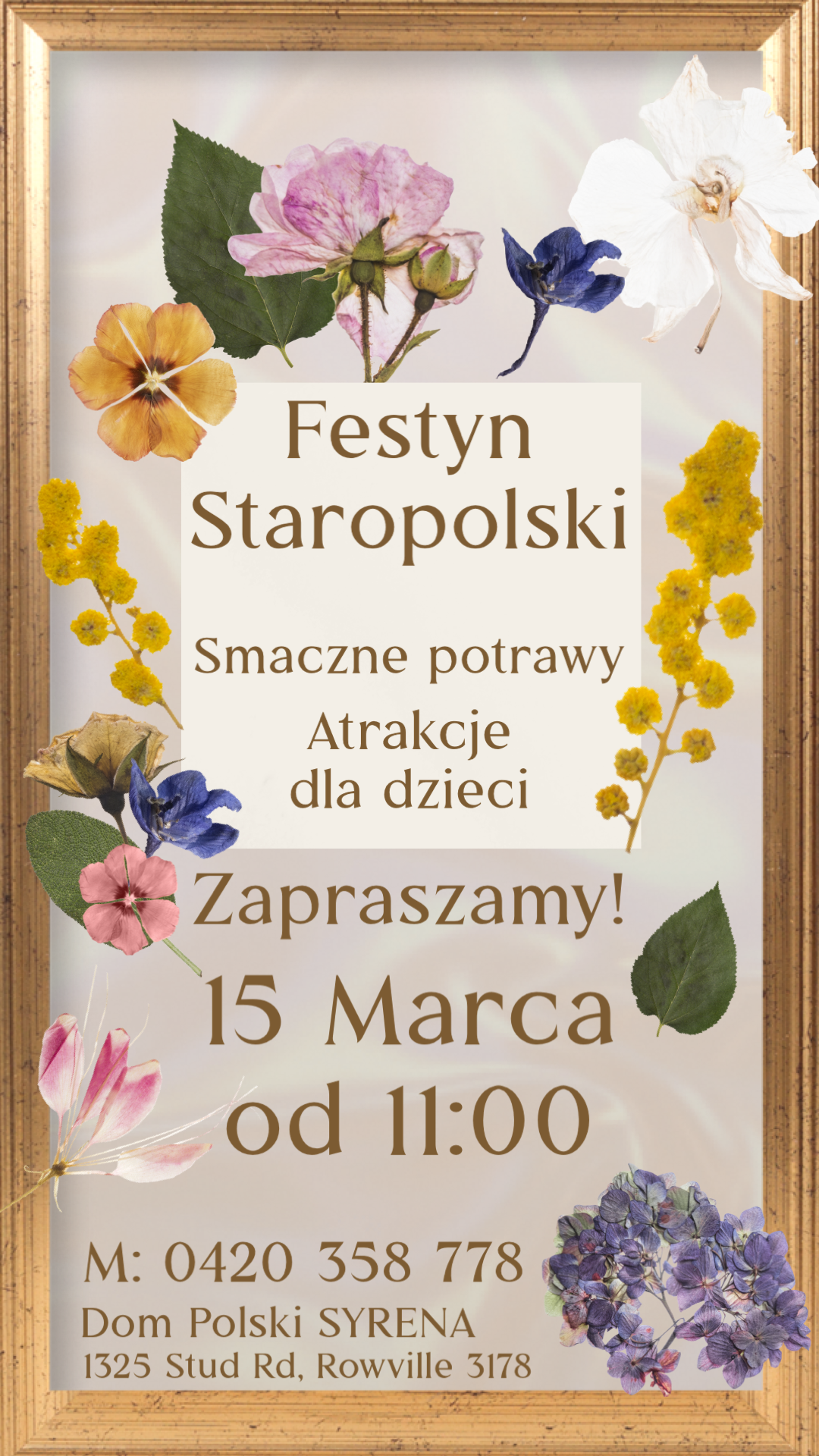 SYRENA zaprasza na doroczny Festyn Staropolski, który odbędzie się w Niedzielę, 15 Marca 2026, na terenie Domu Polskiego „SYRENA” w Rowville.